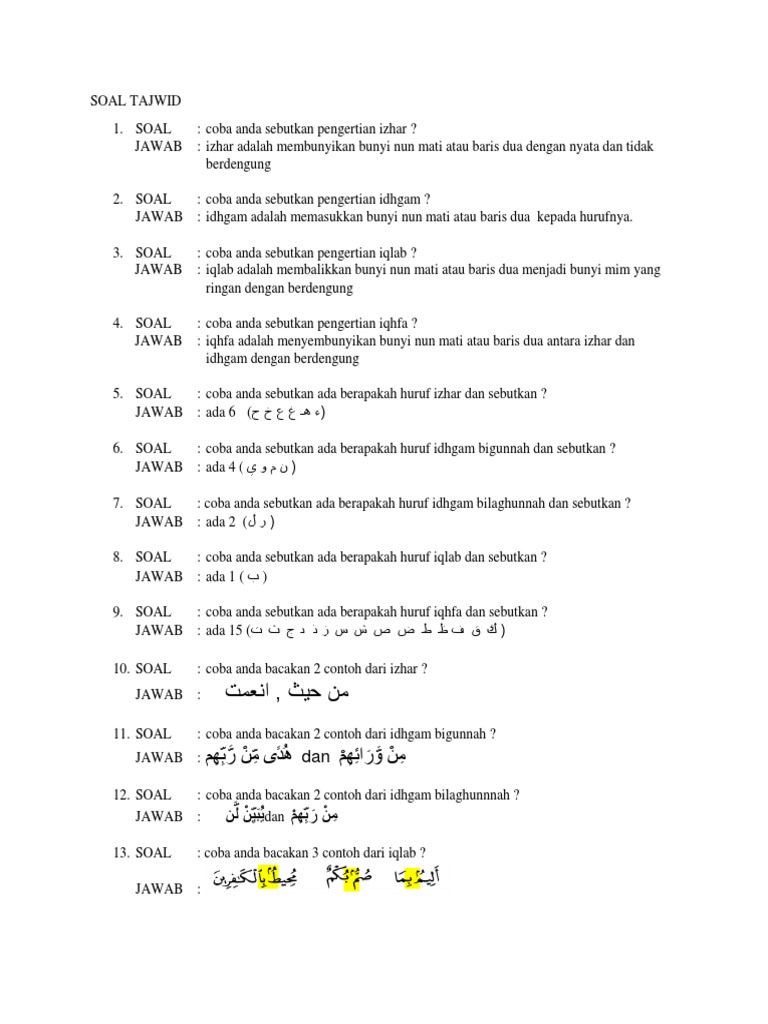Ringakasan Hukum Tajwid Nun Mati Mim Mati Qolqolah Dan Mad