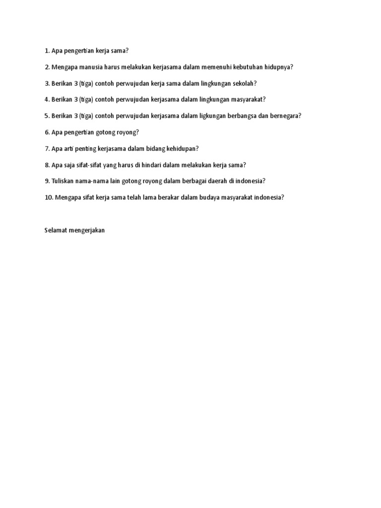 Dalam ayat 3 dinyatakan bahwa setiap orang mempunyai hak untuk berperan dalam rangka pengelolaan lingkungan hidup sesuai dengan peraturan perundang undangan yang berlaku. Contoh pelaksanaan toleransi ini ada di hampir setiap agama yaitu meyakini hanya agama yang dianutnya saja yang paling benar. Namun dalam hubungannya dengan penganut agama lain tetap saling menghargai dan saling mengormati karena agama adalah sifat sifat hak asasi manusia. Berikan 3 tiga contoh perwujudan kerjasama dalam lingkungan masyarakat 9520889. Nah selanjutnya adalah contoh usaha bela negara yang dilakukan oleh kita semua di berbagai lingkungan mulai dari. Detail artikel terkait berikan 3 contoh perwujudan kerjasama di lingkungan sekolah.