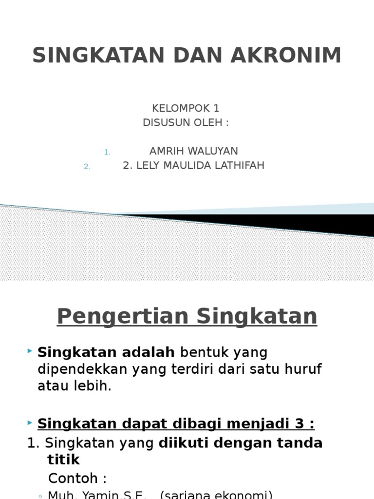Akronim pengertian macam aturan pedoman singkatan contoh. Singkatan ialah bentuk yang dipendekkan yang terdiri atas satu huruf atau lebih.