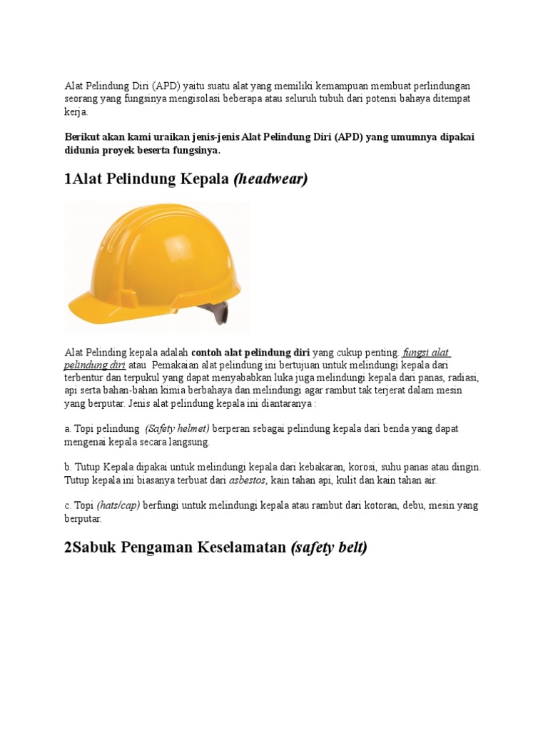 Alat pelindung diri dan fungsinya. Untuk itu mari kita mengenal lebih jauh beberapa ulasan tentang alat pelindung diri apd. Daerah kerja seperti di kilang minyak pabrik pupuk petro kimia proyek pembangunan gedung dan lainnya biasanya menetapkan safety helmet sebagai alat pelindung diri yang mandatory. Rata rata umur pakai sebuah safety helmet adalah 5 tahun.