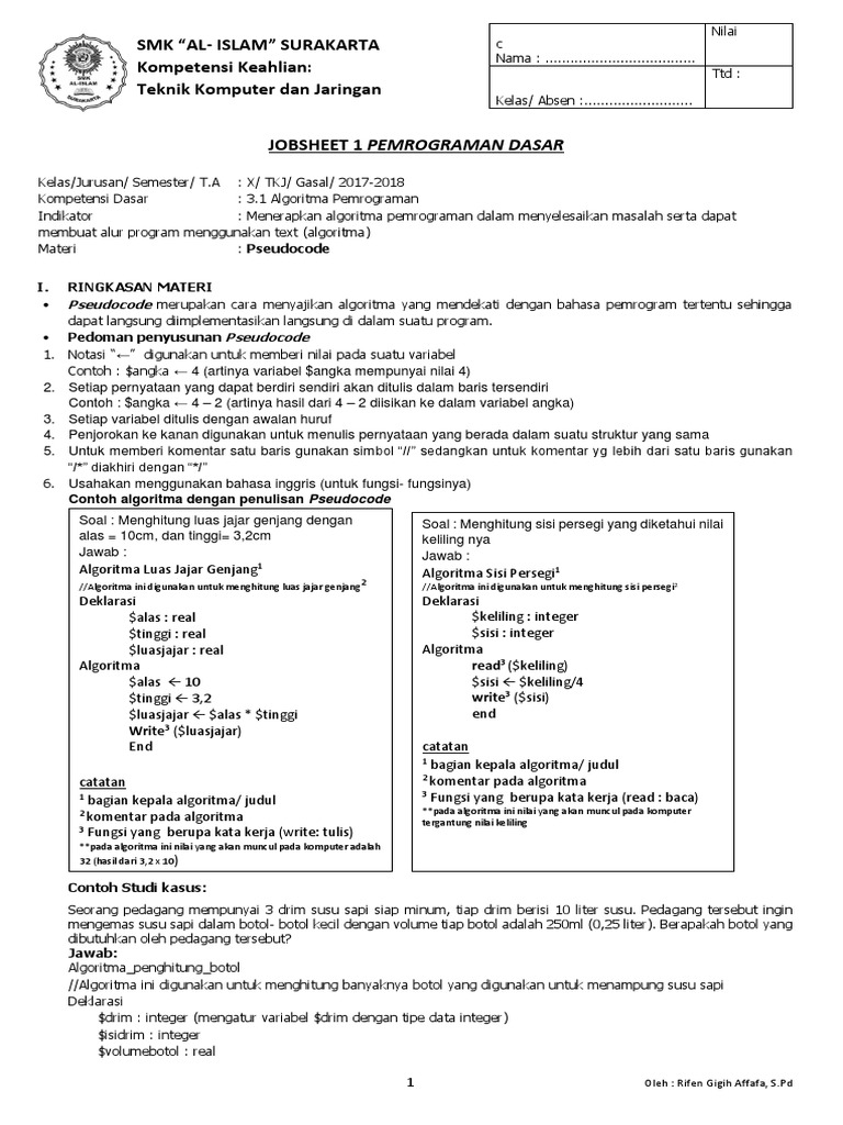 Contoh algoritma pemrograman dasar. Dengan contoh program komputer yang sederhana di atas dengan bahasa pascal. Algoritma pemrograman tingkat dasar. Algoritma mencari materi pemrograman dasar. Tapi saya sarankan lebih baik membuat algoritma dan flowchart sebelum merancang program. Pseudocode yang di gunakan pada penulisan algoritma berupa pada pembuatan program komputer algoritma dibuat. Agar suatu perintah dapat dilaksanakan oleh komputer algoritma harus ditulis dalam notasi bahasa pemrograman sehingga dinamakan program.