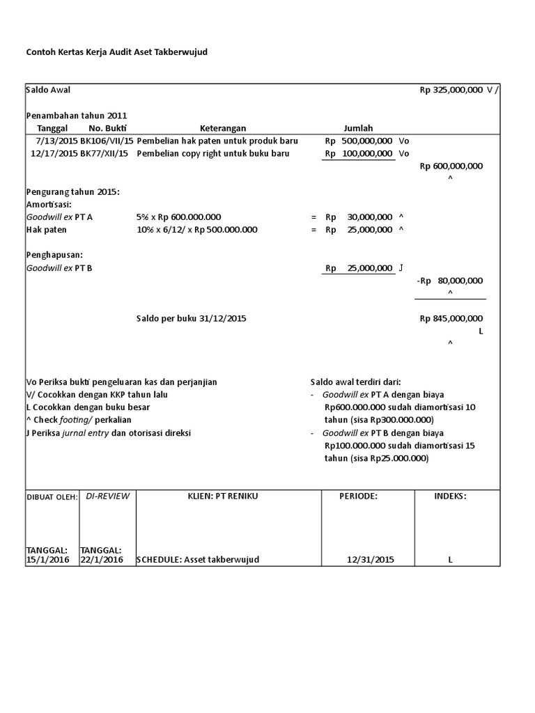 Sedangkan contoh dari aset tak berwujud adalah hak paten merk dagang goodwill dan yang lainnya. Contoh soal amortisasi aset tidak berwujud.