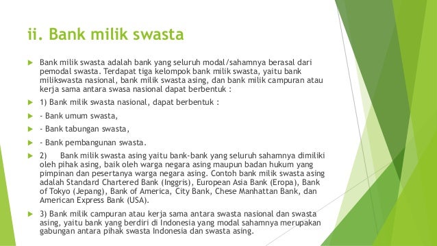 Contoh bank swasta nasional antara lain. Sehingga keuntungan bank ini dimiliki oleh swasta.