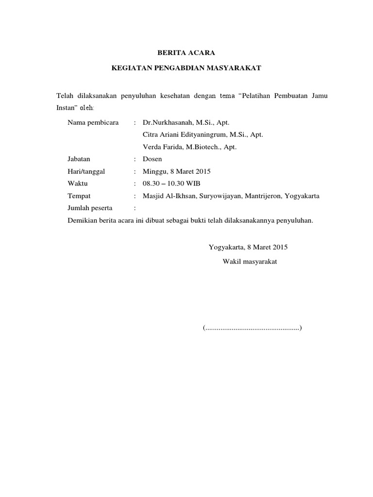 Untuk itulah sebuah perusahaan atau instansi memiliki banyak karyawan dan pegawai yakni menjalankan pekerjaan sesuai dengan tugasnya masing masing. Adapun contoh dari berita acara kegiatan sendiri adalah sebagai berikut. Contoh berita acara rapat kegiatan berita acara merupakan salah kelengkapan administrasi sekretariatan yang cukup penting. Contoh berita acara susah membuat berita acara. Meskinya setiap dari kita harus tahu karena berita acara ini benar benar penting bagi kita terutama ketika hendak menjalin kerja sama dengan orang lain entah itu dengan individu maupun kelompok. Secara garis besar surat berita acara adalah surat dinas yang bisa juga dijadikan bukti yang berisi catatan catatan resmi berkaitan dengan perjalanan kedinasan peristiwa atau kegiatan tertentu.
