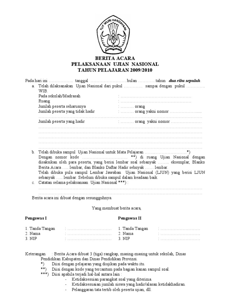 Contoh pelaporan peserta ujian nasional un contoh daftar hadir pengawas ruang un. Berita acara serah terima naskah soal ujian nasional un.