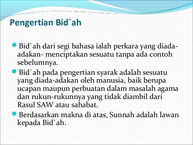 Perlu kiranya sebuah pedoman untuk membentuk pola bagi muhammadiyah untuk menjalani kehidupan sehari hari. Barangsiapa menempuh jalan lain syirik dan bidah atau menyangka bahwa amalan ibadahnya akan dibalas dengan kenikmatan jannah surga meskipun tanpa menuntut ilmu maka akan sia sialah ibadahnya meskipun dengan susah payah dia menjalaninya. Posted on 31 juli 2013 by abdullah. Bidah dalam hal ibadah dan taqarrub kepada allah subhanahu wa taala bidah bidah modern banyak sekali macamnya seiring dengan berlalunya zaman sedikitnya ilmu banyaknya para penyeru dai yang mengajak kepada bidah dan penyimpangan dan merebaknya tasyabuh meniru orang orang kafir baik dalam masalah adat kebiasaan maupun ritual agama mereka. Semoga ini bisa membantu kita memahami contoh contoh perbuatan syirik dan bidah yang mungkin kita temui dalam kehidupan sehari hari di lingkungan kita. Secara bahasa bidah artinya penciptaan atau inovasi yang sebelumnya belum pernah ada.