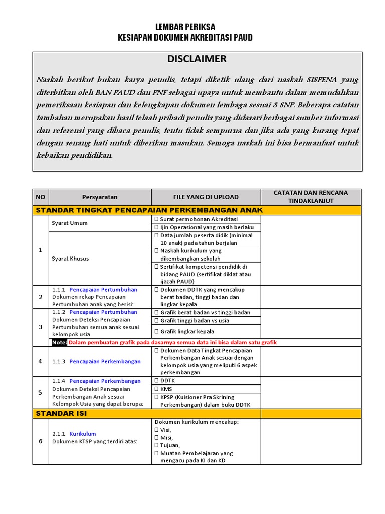 Ban paud pnf adalah badan independen untuk akreditasi pendidikan anak usia dini paud tk raba kb tpa sps dan pendidikan non formal. Rencana kerja dan anggaran sekolah adalah dokumen penting yang harus disusun oleh lembaga sebagai acuan setiap kegiatan lembaga dan juga sebagai syarat dalam pengajuan dana. Berdasarkan kebijakan dan mekanisme akreditasi ban paud dan pnf tahun 2020 seluruh satuan pendidikan paud dan pnf yang sudah terakreditasi tahun 2015 apabila akan mengajukan perpanjangan harus mengirimkan surat permohonan perpanjangan akreditasi kepada ban paud dan pnf provinsi masing masing. Untuk contoh dan pengisian instrumen akreditasi sudah ada di dalam panduan akreditasi ini. Borang akreditasi tkpaud lengkap 8 standar sabtu oktober 28 2017 berikut ini borang akreditasi tkpaud lengkap atau sering disebut juga dengan bukti fisik akreditasi dalam format docx atau doc microsoft word.