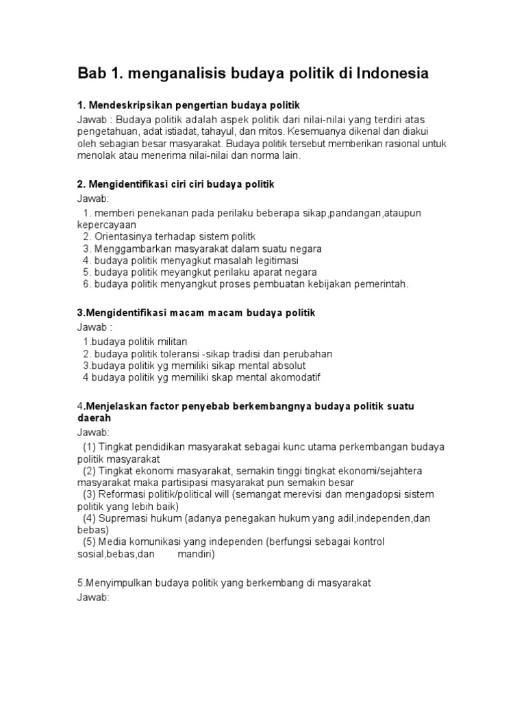 Contoh budaya politik subjek atau kaula pada kehidupan sehari hari. Setelah membaca pengertian budaya politik subjek atau kaula secara singkat dan ringkas maka saatnya kita untuk mengetahui apa saja contoh dari budayanya yang satu ini. Adanya minta kesadaran dan perhatian terhadap sistem politik. Budaya politik kaulasubjek memiliki frekuensi yang tinggi terhadap sistem politiknya. Istilah budaya politik meliputi masalah legitimasi pengaturan kekuasaan proses pembuatan kebijakan pemerintah kegiatan partai partai politik perilaku aparat negara serta gejolak masyarakat terhadap kekuasaan yang me merintah. Budaya politik kaula adalah budaya politik dengan masyarakat yang suda relatif maju baik sosial maupun ekonominya namun masih relatif pasif.