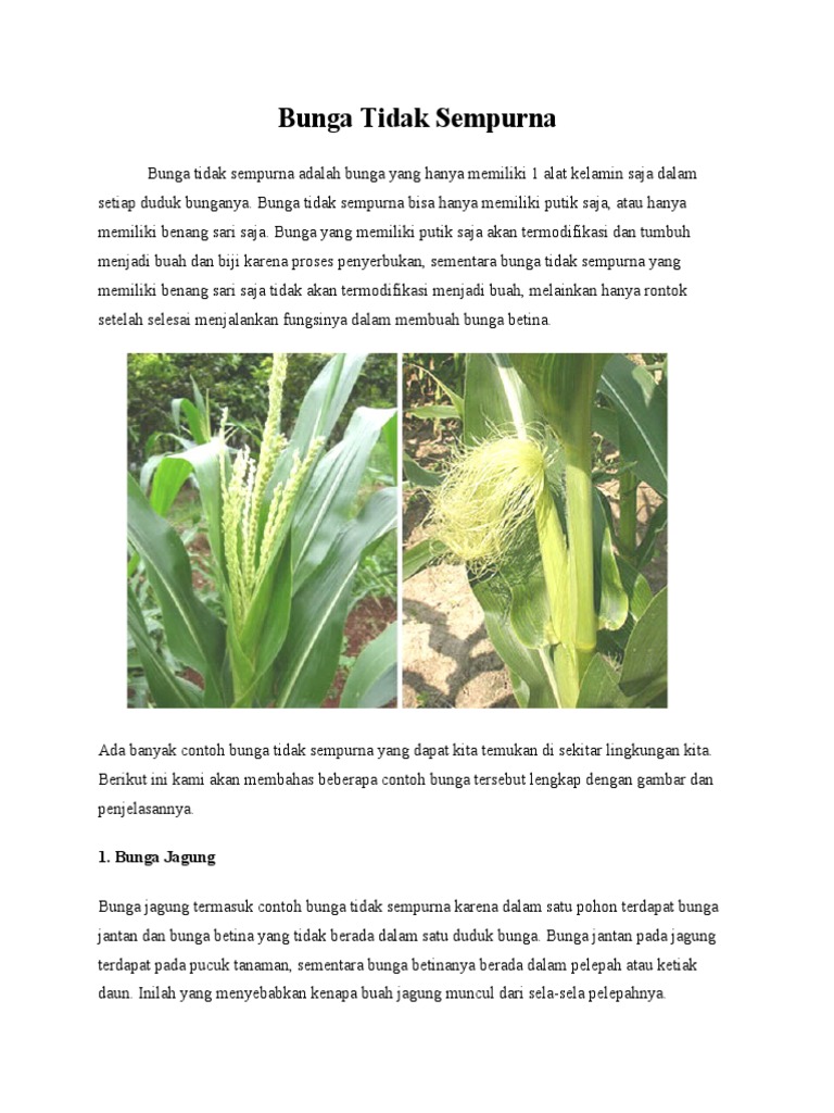 Contoh bunga sempurna dan tidak sempurna. Bagi para pencinta bunga biasanya mereka memelihara bunga sebagai hiasan dari ruangan atau halaman rumah. Pengertian bagian bagian serta gambarnya lengkap. Apa saja contoh bunga sempurna dan bunga tidak sempurna itu. Bunga sempurna dan tidak sempurna setiap bunga tentunya memiliki perbedaan satu dengan lainnya. Bunga jantan pada jagung terdapat pada pucuk tanaman sementara bunga betinanya berada dalam pelepah atau ketiak daun. Bunga disebut bunga sempurna jika mempunyai dua macam alat kelamin yaitu benang sari dan putik secara bersama sama dalam satu organ.