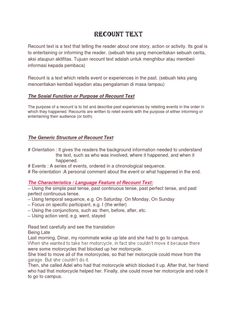 10 Contoh Recount Text Liburan Pengalaman Dll Artinya