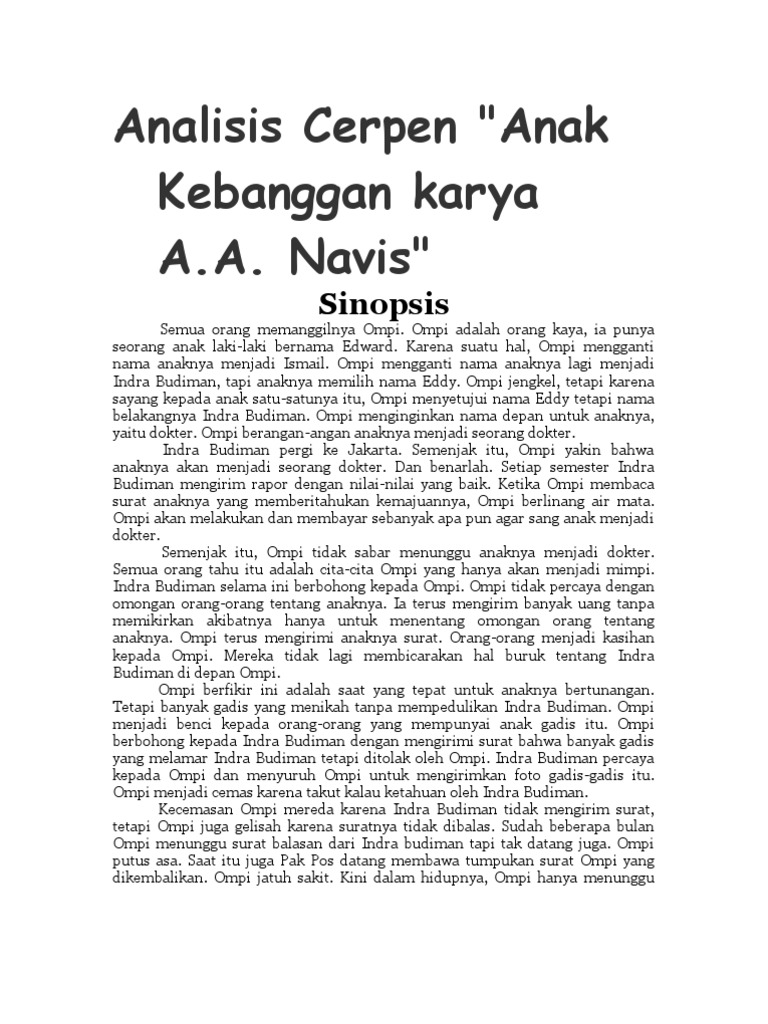 Contoh analisis cerpen semua orang memanggilnya ompi. Cerpen dengan tema cinta dan analisisnya. Cerpen cenderung singkat padat dan segera pada tujuannya dibandingkan karya karya fiksi lain yang lebih panjang seperti novella dan novel. A6 koda jangan berburuk sangka terlebih dahulu pada seseorangjadilah orang yang pemaafdan kita tidak boleh sombong dengan temandan jangan mudah terhasut oleh orang lain. Cerpen singkat merupakan salah satu tipe karya sastra yang memaparkan kisah atau cerita tentang manusia beserta seluk beluknya.