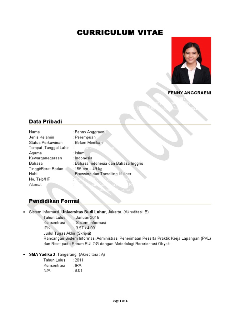 Contoh cv bahasa inggris untuk fresh graduate. Tampilan cv fresh graduate.