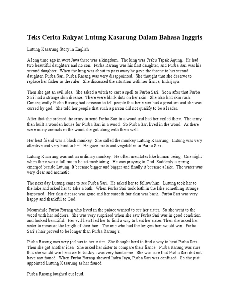 Once there was a couple living in a royal residence. Kali ini kbi akan memberikan beberapa contoh cerita rakyat dalam bahasa inggris beserta artinya. Contoh cerita rakyat dalam bahasa inggris cerita keong mas golden snail. Dongeng berikut berjudul the legend of tanjung menangis merupakan dongeng dari halmahera. Kumpulan 200 contoh soal bahasa inggris lengkap dengan kunci jawaban dan pembahasan. Hari ini bahasainggrisokecom akan mengajak kalian untuk membahas soal yang ada dalam artikel ini dan nantinya bisa kalian jadikan referensi dalam menjawab soal yang di sekolah.