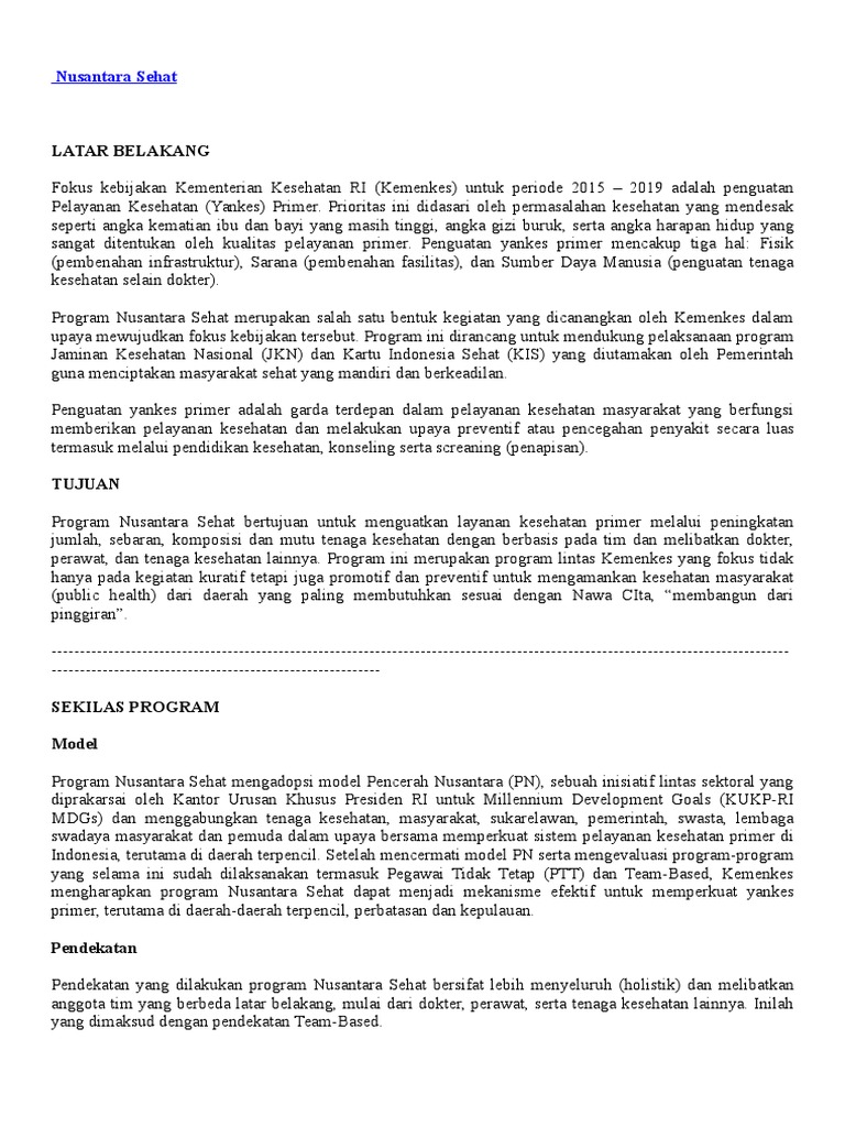 Nusantara sehat dalam benakku hanya pengabdian saat itukarena disebutkan internert mengabdi 2 tahun di dtpk daerah terpencilperbatasan dan kepulauan. Dari kesadaran diri kita bisa mengajak orang lain untuk sadar akan hidup sehat. Nusantara sehat bacth 1 tidak pernah mengetahui sallerynusantara sehat perbulannya. Hd wallpapers contoh esai nusantara sehat free download wallpaper hd background hd desktop widescreen best wallpaper for desktop high quality wallpapers and high quality resolutions. Ketentuan pembekalan bapelkes batam. Contoh esai yang dibuat diharapkan muncul penyelesaian dengan cara baru yang lebih kompleks sesuai dengan masalahnya.