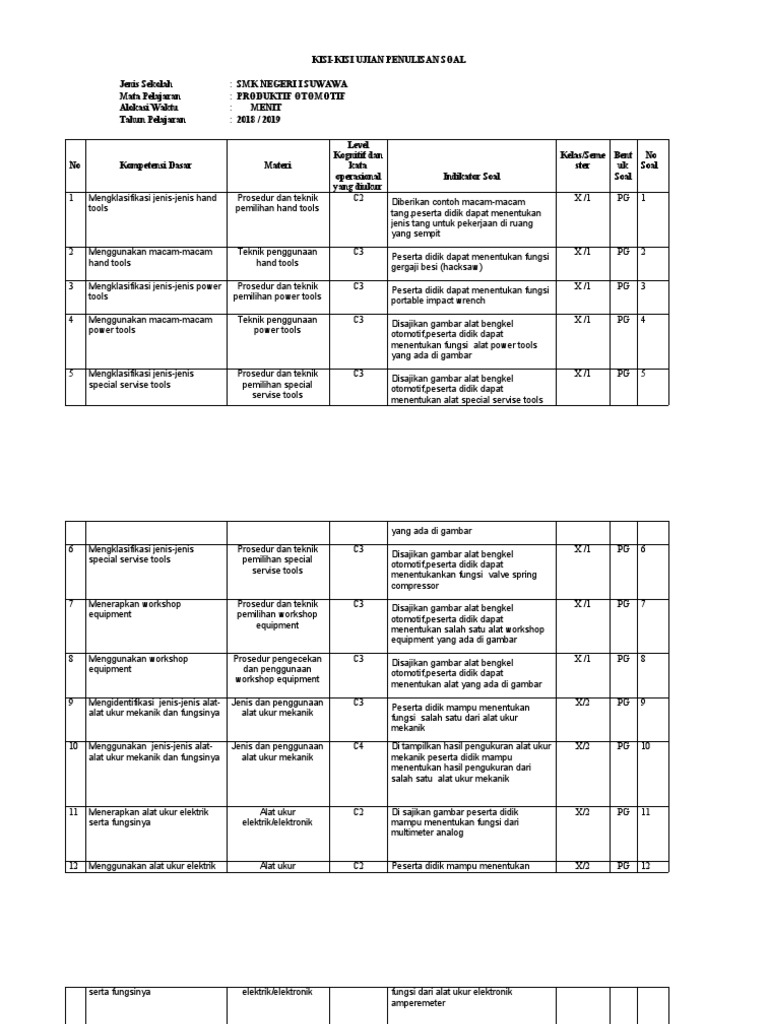 Contoh format kisi kisi soal kurikulum 2013. Contoh format kisi kisi soal smk. Contoh format kisi kisi soal kurikulum 2013 serietnobloggercoid 63600 am beberapa waktu lalu saya telah bagikan beberapa instrumen terkait penyusunan soal yaitu kata kerja operasional dan kaidah penyusunan soal. Diharapkan format telaah kisi kisi soal kurikulum 2013 revisi 2017 ini merupakan salah referensi yang baik dan benar sesuai harapan anda bisa digunakan untuk contoh format doc download kisi kisi kurikulum 2013 microsoft word dengan demikian file tersebut bisa memenuhi dan mengakhiri pencarian. Contoh file materi plpg sertifikasi guru tahun 2016 terlengkap semua bidang studi gratis. Ini dapat digunakan sebagai acuan oleh guru kelas maupun guru mapel penjaskes atau pai di sekolah dasar dalam menyusun kisi kisi soal baik soal ulangan harian pas danatau pat. Contoh kisi kisi kartu soal uraian dan pilihan ganda pembuatan soal hots k13.