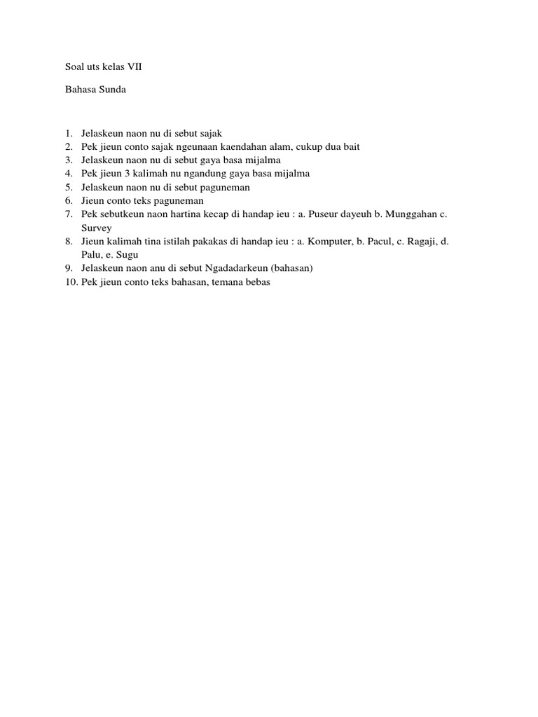 Contoh gaya basa mijalma. Sama seperti bahasa lainnya bahasa sunda juga kaya dengan pengungkapan perasaan batin yang dituangkan dalam bentuk majas atau gaya bahasa. Conto conto kalimah nu ngagunakeun gaya basa mijalma. Lalu sebenarnya apa itu simile dan seperti apa contoh majas simile pada karya sastra atau percakapan sehari hari. Angin ngarandeg panonpoe nyumput tukangeun mega. Pemakaian gaya bahasa ini untuk memperoleh efek efek tertentu keseluruhan ciri bahasa sekelompok penulis sastra dan cara khas dalam menyampaikan pikiran dan perasaan baik secara lisan maupun tertulis. Gaya basa nya éta rakitan basa kalimah nu dipaké sangkan nimbulkeun pangaruh éfék anu leleb karasana ka nu maca atawa nu ngadangukeun ku jalan ngabandingkeun hiji barang jeung barang séjénna.