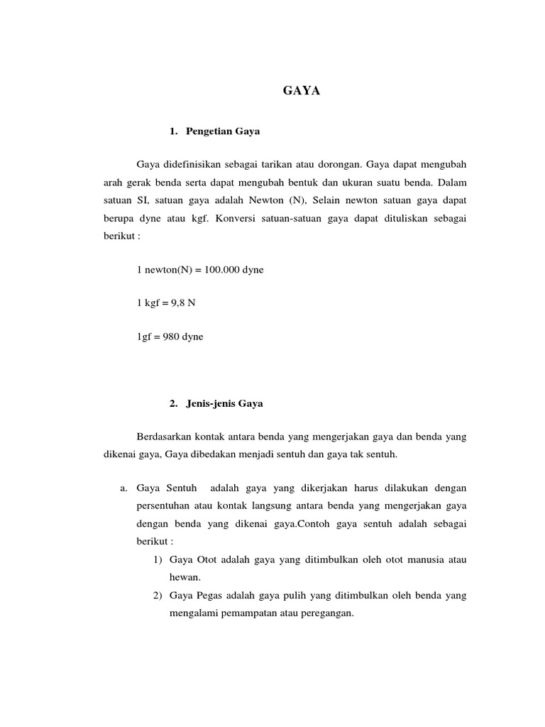 Pengertian gaya adalah dorongan atau tarikan pada suatu benda yang dapat mengakibatkan perubahan bentuk ukuran benda dan gerak benda. Ditinjau dari cara gaya menggerakkan benda gaya dapat dibedakan menjadi dua yaitu. Jenis gaya yang pertama adalah gaya sentuh gaya yang satu ini merupakan salah satu jenis gaya yang bisa terjadi saat sumber gaya bersentuhan langsung dengan benda atau objek yang menerima gaya tersebut. Pengertian gaya gaya adalah tarikan atau dorongan yang bekerja pada sebuah benda. Ditinjau dari cara gaya menggerakkan benda gaya dapat dibedakan menjadi dua yaitu. Gaya sentuh dan gaya tak sentuh soal tau latihan gaya sentuh dan gaya tak sentuh a.
