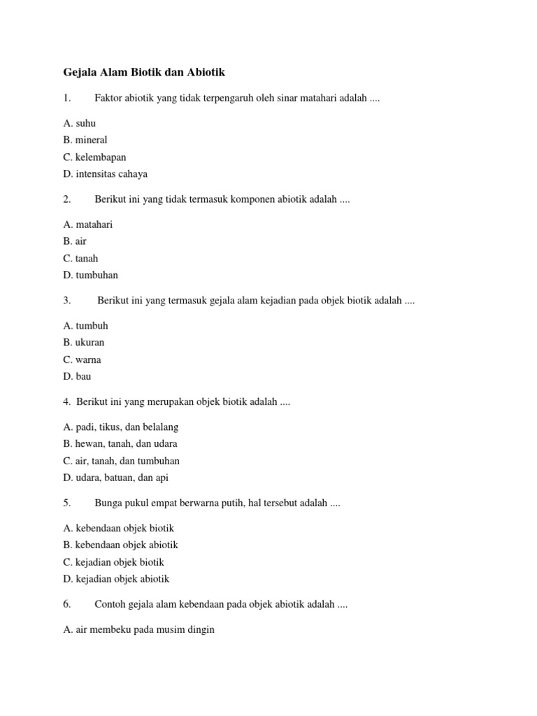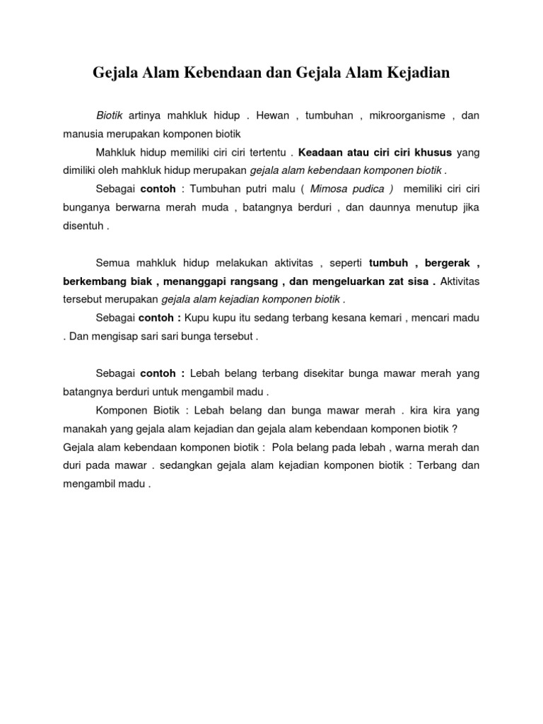 Gejala alam biotik dan abiotik hasil dari interaksi tersebut memunculkan fenomena fenomena. Gejala abiotik dan biotik. Beberapa contoh gejala alam biotik. Kita dapat menemukan banyak contoh gejala alam abiotik di sekitar lingkungan kita. Pengertian contoh gejala alam biotik dan abiotik sains berkembang dari rasa ingin tahu manusia dalam merespons gejala gejala alam. Peranan lingkungan biotik dalam mempengaruhi timbulnya gejala alam abiotik bisa dikatakan hampir tidak ada.