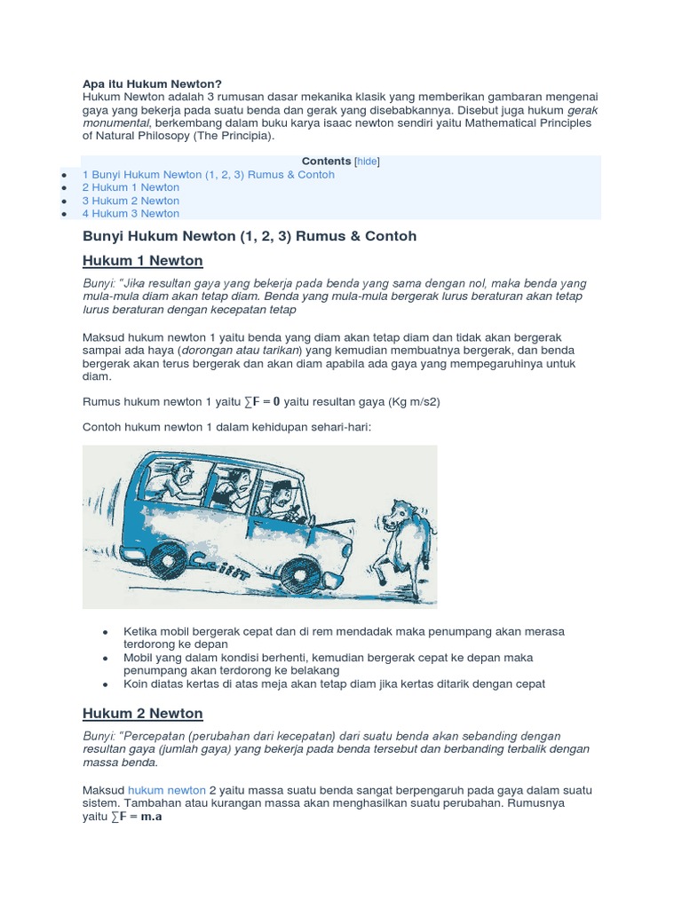 Materi Hukum Newton 1 2 Dan 3 Beserta Contoh Soalnya