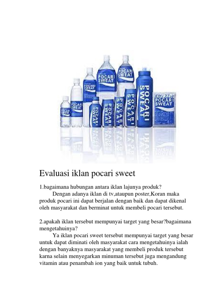 Di luar jepang juga dijual pada daerah asia timur asia tenggara dan timur tengah. Dengan model iklan yang menarik dan setelah kalian mengetahui kata kata promosi iklan minuman pocari sweat ini dapat memberikan referensi untuk membuat iklan yang berkualitas dan tertarget sesuai pasar yang sedang kalian inginkan. Politekniknegeribatam kampusterbaik kampusnegeriindonesia kampusnegeriterbaik pocarisweat pocarisweatindonesia pocariid batamstatepoliteknik pocarisweatjapan tunecorejapan. Pocari sweat 350 ml adalah teman terbaikmu. Di luar jepang juga dijual pada daerah asia timur asia tenggara dan timur tengah. Minuman isotonik merupakan produk yang tergolong baru di dalam industri minuman kesehatan dimana pocari sweat sendiri merupakan pelopor dari minuman isotonik di indonesia dan hingga kini masih sebagai pemimpin pasar.