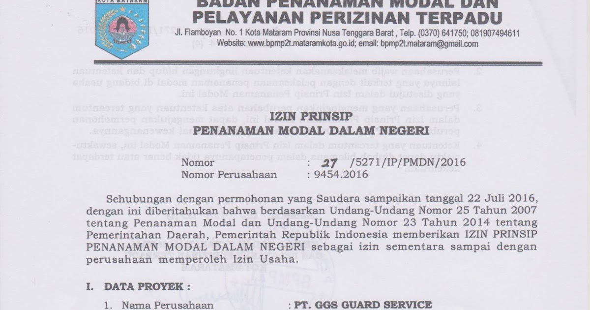 Adalah nomor surat persetujuan atau izin prinsip penanaman modal dan tanggal penerbitannya. 14 tahun 2015 tentang pedoman dan tata cara izin prinsip penanaman modal perka bkpm 142015 yang mulai berlaku sejak 8 oktober 2015. Izin prinsip penanaman modal adalah izin dari pemerintah pemda provinsi pemda kabupatenkota yang wajib dimiliki dalam rangka memulai usaha. Mulai januari 2018 proses digitalisasi dilanjutkan untuk penerbitan dokumen izin usaha dari 14 kementerian yang sudah mendelegasikan penerbitan izin usahanya ke pelayanan terpadu satu pintu ptsp pusat di bkpm. Masing masing lingkup tersebut memiliki kriteria yang berbeda. Surat izin prinsip penanaman modal.