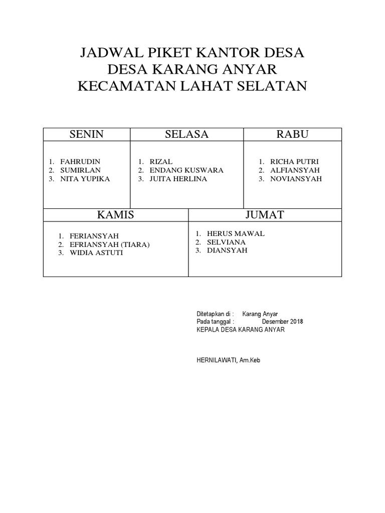 Contoh jadwal piket kantor. Contoh jadwal piket kelas contoh jadwal piket kelas untuk guru kelas wali kelas yang ingin berkreasi dalam pembuatan jadwal piket kelas disekolahnya. Di dalam sebuah jadwal dinas atau jadwal kerja shift biasanya harus mempertimbangkan beberapa hal agar jadwal tersebut dapat berjalan dengan baik. Contoh format buku piket sekolah ini merupakan salah satu administrasi petugas piket disekolah baik sdmi smpmts dan smasmkma. Berikut ini contoh format jadwal piket kebersihan format word sebagai salah satu acuan guru saat menetapkan jadwal untuk para siswa dalam kegiatan kebersihan kelas di sekolah. Keamanan kebersihan konsultan industri mengurangi kebisingan. Ok langsung saja untuk download desain jadwal piket kelas yang super keren unik keatif dan super gampang editnya silahkan pilih desain kelas yang keren klik link di bawah ini.