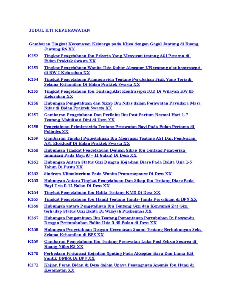 Cakupan pemberian vitamin a pada ibu nifas di bps wilayah kerja. Di bawah ini adalah beberapa contoh judul kti terbaru kebidanan yang bisa di jadikan acuan buat mahasiswi kebidanan yang masih bingung dengan judul judul kti berikut admin akan paparkan kepada kalian silahkan di simak dan semoga bermanfaat. Oleh karenanya mahasiswa butuh referensi judul dan contoh skripsi lengkap untuk dijadikan penelitian terdahulu. 150 judul karya tulis ilmiah untuk jurusan kebidanan unknown 2012 11 05t0223000800 50 stars based on 35 reviews khusus buat para bidan seduniaterutama bidan indonesiapilihlah judul kti dibawah ini yang menurut anda paling cocok untuk dijadikan s. Contoh judul kti kebidanan. Judul kti skripsi kebidanan keperawatan terbaru lengkap tahun 2013.