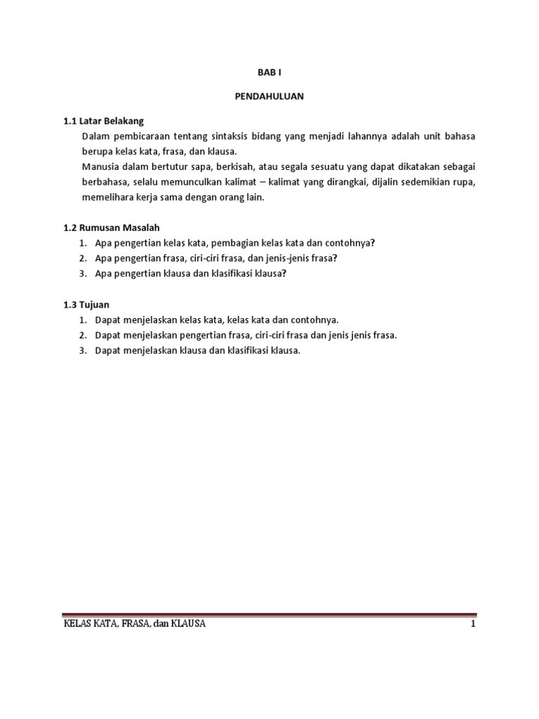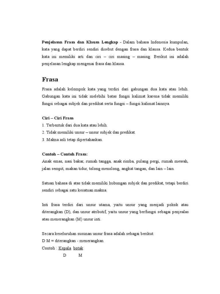 Semua guru baru saja melakukan rapat di ruang kepala sekolah. Frasa adalah gabungan dua kata atau lebih yang bersifat nonprediktif artinya tidak terdapat predikat. Frasa adalah sebuah satuan yang terdiri berdasarkan dua kata atau lebih yang menduduki satu fungsi kalimat. Menurut kbbi frasa adalah dua kata atau lebih yang bersifat nonpredikatif. Klausa pengertian unsur ciri macam adjektiva dan contohnya dosenpendidikancom untuk pembahasan kali ini kami akan memberikan ulasan mengenai klausa yang dimana dalam hal ini meliputi pengertian klausa ciri klausa fungsi klausa jenis klausa dan contoh klausa. Posting pada sma ditag 10 contoh frasa analisis frasa berdasarkan klasifikasi analisis frase apa itu predikat apa yang dimaksud dengan debat kusir berikan contoh kalimat deklaratif berikut bukan jenis pronomina adalah ciri ciri frasa contoh frasa dalam bahasa inggris contoh frasa dan klausa contoh frasa dan klausa dalam bahasa inggris.
