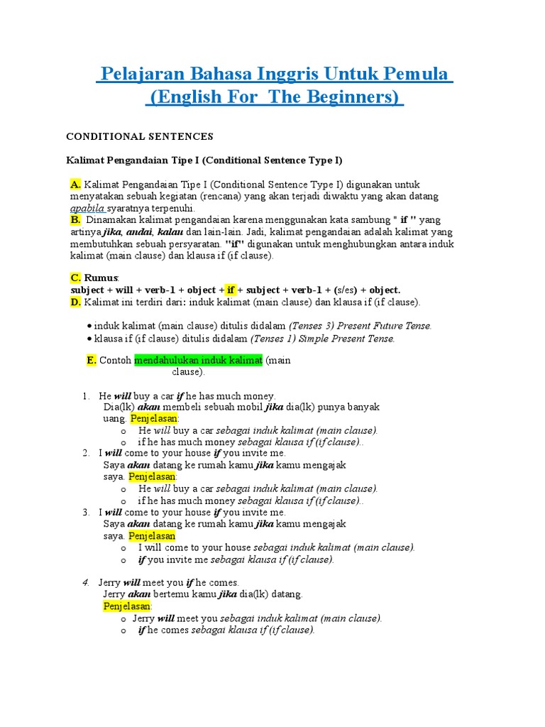 Contoh kalimat pengandaian dalam bahasa inggris. Jika aku bekerja keras aku akan memiliki banyak uang. Hanya saja cara penulisana kedua kalimat ini sangatlah berbeda terlebih dalam bahasa inggris ada cukup banyak jenis tenses yang digunakan. If i work hard i will have a lot of money. Jika kamu membeli buku baru itu kamu akan menikmati membaca cerita di dalamnya. Bila saya besar nanti saya ingin menjadi dokter. Klausa if dalam waktu sekarang simple present present continuous dan present perfect dan klausa bebas dalam bentuk simple present atau simple.