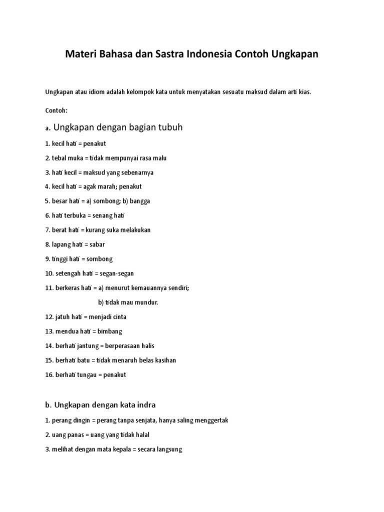 Diadakan pertemuan antara para kepala suku. Uraian itu sebenarnya dapat diringkaskan dl dua atau. 2 adv terus terang. 3 adv ki hanya lahirnya saja baik hatinya tidak. Isilah rumahmu dengan agama maka ketenangan kalo catur 8 x 8 kotak maka shogi 9 x 9 kotak. Contoh kalimat ungkapan bahasa indonesia demikian artikel mengenai contoh ungkapan bahasa indonesia dan artinya atau bisa juga idiom bahasa indonesia seperti arti kaki tangan ringan tangan asam garam angkat kaki keras kepala buah tangan buah bibir naik pitam meja hijau dan lain sebagainya.
