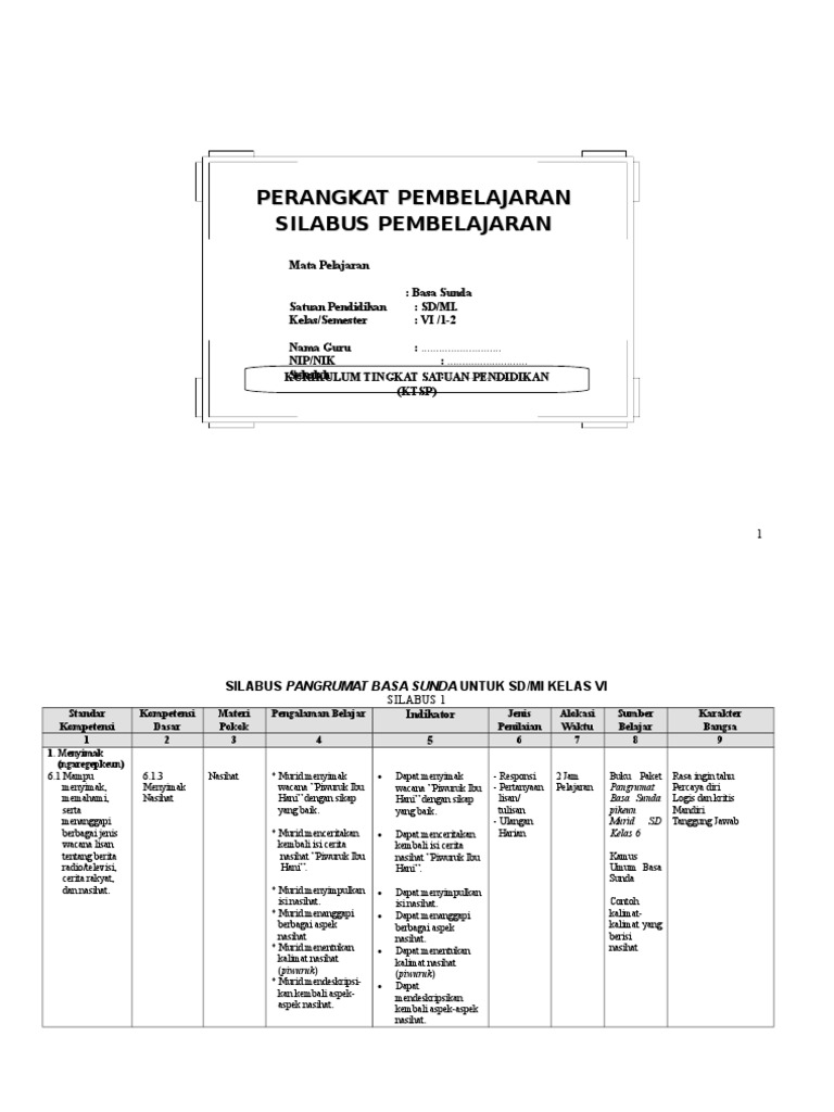 Silabus Basa Sunda Kls 5 Semester 1