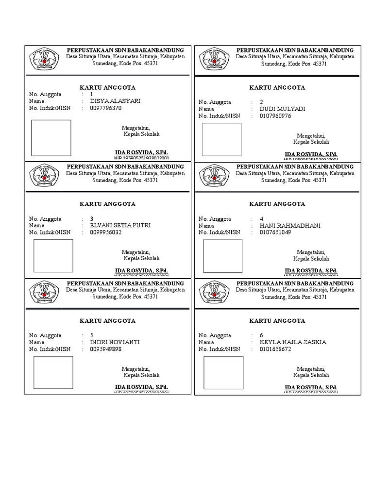 Contoh kartu anggota perpustakaan. Karena untuk peminjaman atau pengembalian buku anggota hanya cukup menunjukkan kartu dan perugas pertus tinggal mengarahkan kartu ke barcode reader. Demikian informasi tentang 4 contoh kartu katalog perpustakaan mudah mudahan dapat membantu keseluruhan proses kegiatan yang dilakukan di perpustakaan dengan menggunakan fasilitas yang ada untuk memperlancar dan mempercepat tercapainya tujuan perpustakaan sekolah. Berikut adalah contoh kartu anggota perpustakaan yang menggunakan aplikasi senayan untuk bagian depannya. Karena dengan dimilikinya kartu tersebut akan mempermudah dalam mengkoordinir anggota dan juga mempermudah dalam proses transaksi peminjaman buku yang dilakukan oleh anggota perpustakaan. Disini yang akan saya bahas adalah membuat kartu anggota perpus dengan menggunakan aplikasi perpustakaan sekolah simple perpus dari ichasoft yang di dalamnya sudah include aplikasi cetak kartu perpustakaan. Keterangan kartu buku kartu buku adalah kertas kecil dengan ukuran 125 cm x 75 cm yang diletakkan dibagian sampul belakang buku yakni pada kantong buku.