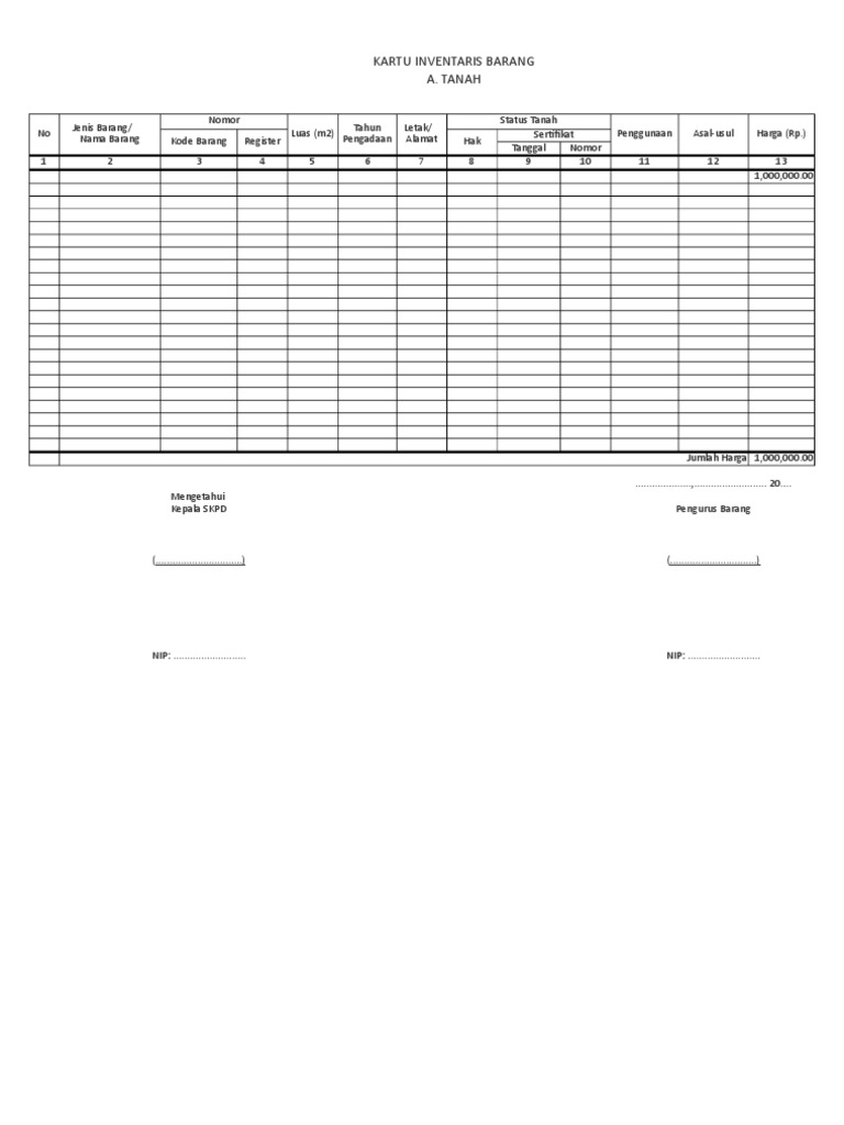 Contoh kartu inventaris barang kantor. Assalamualaikum wrwb selamat siang suatu kantor atau sekolah dalam mengelola sarana prasarana harus mempunyai kartu inventaris barang. Kartu ini berfungsi untuk mengadministrasi barang seperti mengetahui jumlah barang dan kondisi barang apakah masih baik atau sudah rusak dan harus diganti. Silahkan anda bisa download format microsoft office excel. Kode barang kib kartu inventaris barang sesuai nomo 17 tahun 2007 keputusan menteri dalam negeri dan sampai sekarang masih berlaku. Download format laporan inventaris barang format excel ini dibagikan secara gratis untuk pengelola aset sekolah jenjang sd smp sma smk ma mts dan mi. Anda dapat melihat preview sebelum mendownload guna menghindari kesalahan pemilihan file.