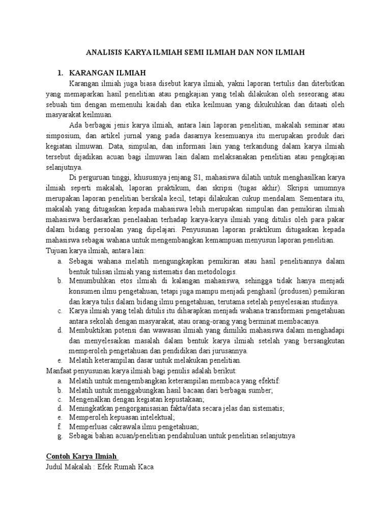 Contoh karya tulis ilmiah populer sederhana formal non formal tentang pendidikan sampah pergaulan bebas pencemaran air bahaya rokok narkoba kesehatan kenakalan remaja lingkungan yang baik dan benar. Contoh karya ilmiah populer terlengkap halo bro sis siapa sih yang tidak pernah mendengar karya ilmiahatau mungkin bro sis yang sedang membaca artikel badrul mozila ini sedang diberikan tugas oleh gurudosen untuk mencari atau mengerjakan karya ilmiah ya. Jadi dikesempatan kali ini kita akan membahas artikel mengenai tentang contoh karya ilmiah yang meliputi pengertian karya ilmiah karakteristik karya ilmiah struktur dari karya ilmiah contoh karya ilmiah karya tulis ilmiah tentang kesehatan karya tulis ilmiah singkat dan benar karya tulis ilmiah. Menurut liang gee dalam dalman 2012. Defenisi ilmiah ini sendiri akan mengalami reduksi pengurangan makna bila digandengkan dengan kata populer. 155 karangan ilmiah populer adalah semacam karangan ilmiah yang mencakup ciri ciri karangan ilmiah yaitu menyajikan fakta fakta secara cermat jujur netral dan sistematis sedangkan.