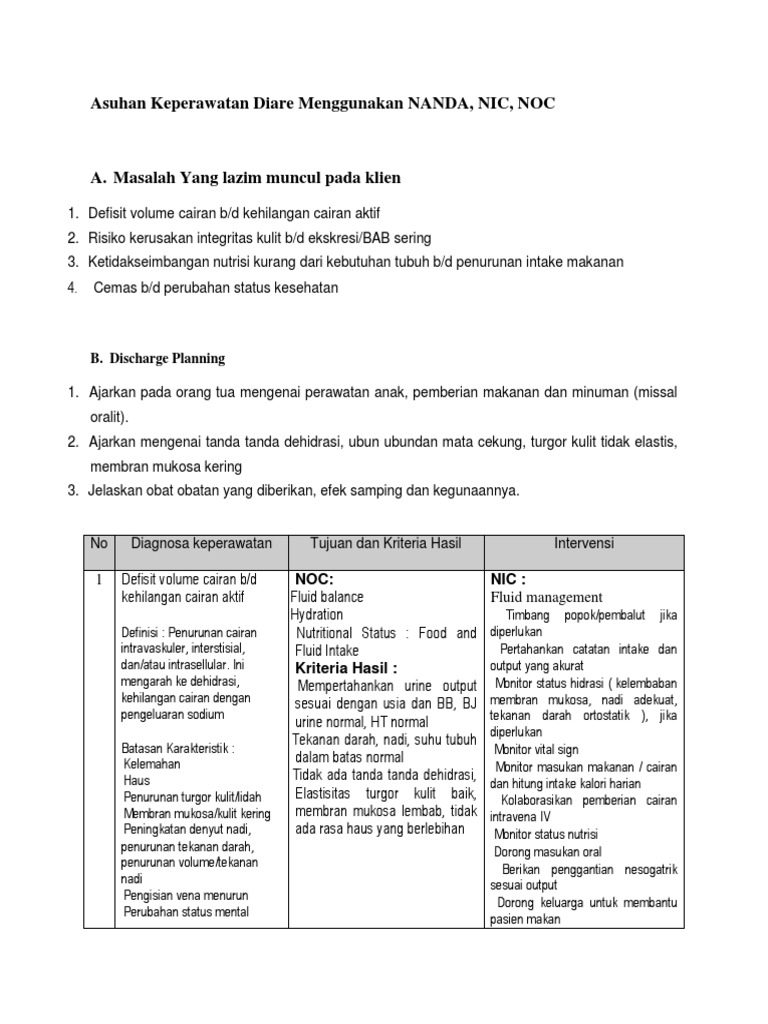 Contoh makalah laporan askep asuhan keperawatan diare pada pasien anak. Pada tahun 2003 angka kematian akibat diare pada anak anak dan balita di bawah 5 tahun mencapai 187 juta. Adapun diagnosa yang muncul pada anak arya yaitu. Secara teoritis diagnosa keperawatan yang berkemungkinan muncul pada diare ada 6 diagnosa. Saat terjadi wabah dbd malaria atau pun diare diadakan kerja bakti. Dari 6 diagnosa keperawatan tersebut hanya 3 diagnosa yang kelompok temukan pada kasus ini.
