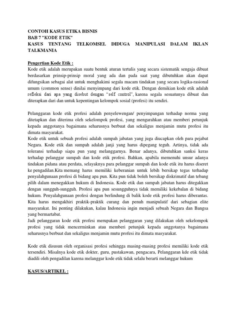 Atik mulyaningrum npm. Etika bisnis dalam sebuah perusahaan dapat membentuk bahkan meningkatkan norma nilai dan perilaku karyawan maupun pimpinan dalam membangun hubungan yang harmonis adil dan sehat terhadap pelanggan atau mitra kerja. Contoh pelanggaran etika bisnis dalam perusahaan menjadi salah satu kasus yang paling banya di bicarakan.