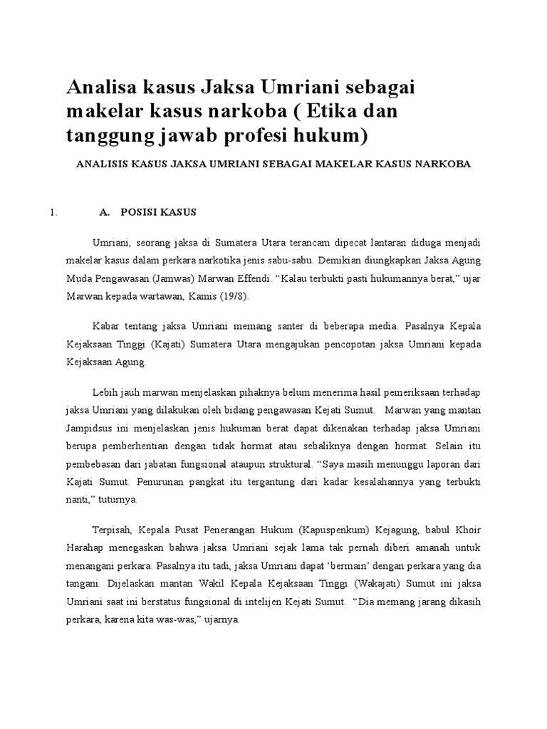 Contoh kasus narkoba dan analisisnya. 2011 tentang pelaksanaan kebijakan dan strategi nasional pencegahan dan pemberantasan penyalahgunaan dan peredaran gelap narkotika tahun 2011 2015. Sebuah negara dapat menjalankan yurisdiksi kriminal dan privat terhadap warga negaranya meskipun yang bersangkutan sedang berada di negara lain. Beberapa paket ganja dan 070 gram sabu disita. Anggota menghentikannya dan kemudian dilakukan penangkapan terhadap pelaku my alias tomi 27 yang berprofesi sebagai buruh oleh petugas kepolisian resor bogor kota. Berdasarkan pengakuannya kepada polisi tessy sudah lima kali berpesta narkoba bersama kedua rekannya pudji sapto dan ahmad jamhari. Director of public prosecutions 1946 dan amerika serikat dalam kasus iran hostages crisis 1979 1980.