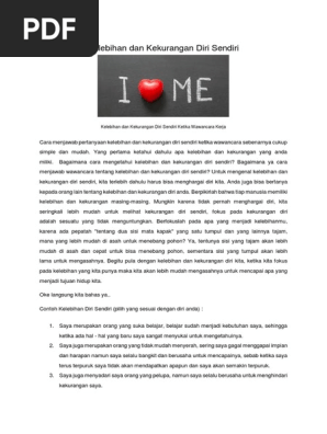Tidak berfikir negatif terhadap diri sendiri. Semoga bermanfaat salam sukses. Berani bangkit dari kegagalan. Dimilikinya sejumlah kelebihan serta kekurangan pada setiap manusia yang mengakibatkan setiap manusia tidak bisa hidup sendiri. Deskrisi diri sendiri ini juga dapat di sajikan dalam bentuk cv yang biasanya di dalamnya terkandung kelebihan dan kekurangan diri anda.
