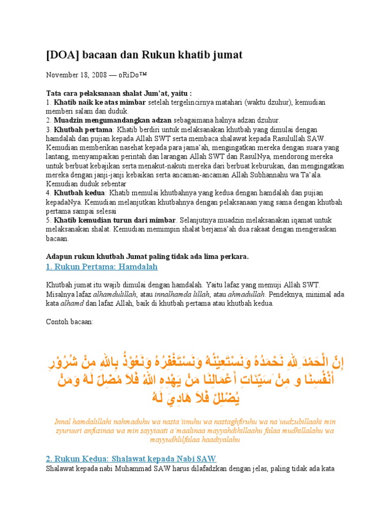 Hari jumat ini merupakan pengganti sholat dzuhur dan bukan itu saja hari jumat hari dimana seluruh umat islam merayakan pesta ukhuwah satu minggu oleh karenanya disebut dengan hari jumat dari jamaah. Khutbah jumat ini memiliki rukun rukunnya tersendiri yang tentunya harus dan wajib dipenuhi ketika shalat jumat tiba. Menggali mata air kebaikan di bulan syaban khutbah pertama. Mereka tidak menunaikannya sesuai dengan sunnah rosulullah tidak menyempurnakan syarat syarat dan rukun rukunnya serta kewajiban kewajibannya. Banyak keutamaan keutamaan yang allah swt. Wahai kaum muslimin sesungguhnya iman itu tidak diperoleh hanya dengan berangan angan.