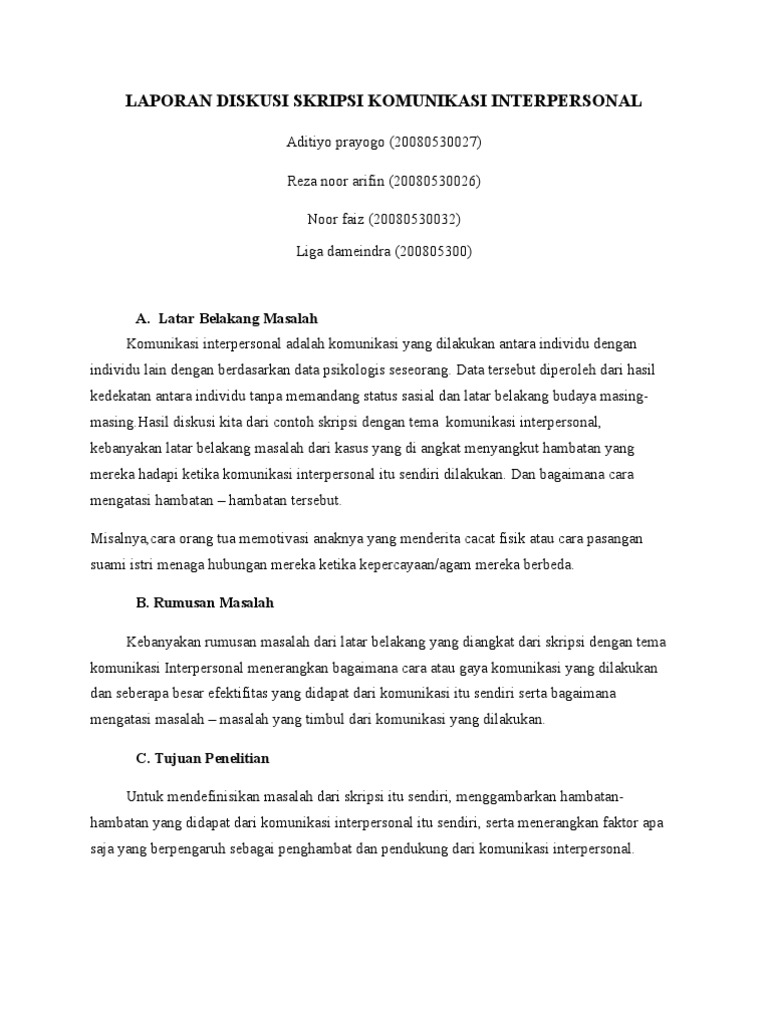 Contoh komunikasi antar pribadi. Dalam kehidupan sehari hari seseorang tidak bisa terlepas dari komunikasi. Berikut ini adalah download jurnal gratis yang merupakan kumpulan file dari berbagi sumber tentang pdf komunikasi antar pribadi yang bisa bapakibu gunakan dan diunduh secara gratis dengan menekan tombol download biru dibawah ini. Sebuah makalah sederhana sebagai tugas dari makul kap tentang contoh kasus gagalnya komunikasi. Contoh kasus komunikasi antar pribadi on. Kita berinteraksi dengan orang lain atau pun kelompok lain merupakan bentuk dari komunikasi antar pribadi itu sendiri. Komunikasi adalah pertukaran informasi antara dua individu atau lebih yang bertujuan untuk memberi dan menerima informasi.
