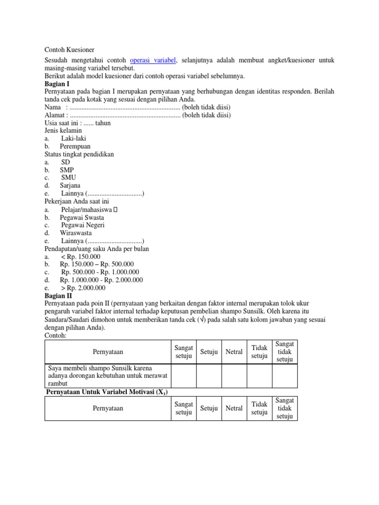 Angket ini diperlukan untuk kepentingan penelitian dalam rangka menyusun skripsi. Kuesioner ini dibuat dalam rangka menunjang kegiatan penelitian yang dilakukan oleh peneliti selaku mahasiswa program manajemen s1 universitas widyatama tentang pengaruh promosi penjualan terhadap keputusan pembelian maka saya mengharapkan kesediaan bapakibusaudarai untuk memberikan pendapat mengenai promosi penjualan. Kuesioner responden analisis kualitas produk dan label halal pada keputusan pembelian kosmetik wardah study kasus mahasiswa uin walisongo semarang periode 2016 terimakasih atas partisipasi anda menjadi salah satu responden dan secara sukarela mengisi kuesioner ini. Kuesioner ini bertujuan untuk mendapatkan informasi mengenai analisis faktor faktor yang mempengaruhi konsumen terhadap keputusan pembelian secara online atau melalui situs jejaring sosial berkaitan dengan kepercayaan kualitas pelayanan dan minat beli. Melalui adanya berbagai contoh kuesioner seperti di atas maka akan dapat lebih mudah dalam penyusunan kuesioner berdasarkan kebutuhan yang sesuai. Baik untuk keperluan pendidikan tugas kuliah pemasaran produk kualitas pelayanan keputusan pembelian dan lain sebagainya.