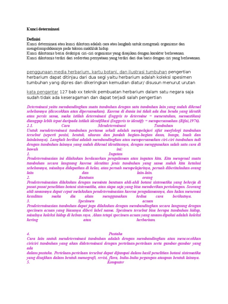 Contoh kunci determinasi sederhana tumbuhan. Tumbuhan berupa herba atau. Jadi identifikasi adalah menentukan persamaan dan perbedaan antara dua makhluk hidup kemudian menentukan apakah keduanya sama atau tidak baru kemudian memberi nama. Berikut ini merupakan pembahasan tentang pengertian kunci determinaasi contoh kunci determinasi hewan contoh kunci determinasi tumbuhan cara menggunakan kunci determinasi kunci dikotomi kunci dikotomi tumbuhan dan hewan contoh kunci determinasi sederhana tumbuhan kunci determinasi tumbuhan lengkap. Cara membuat kunci determinasi. Kunci determinasi dengan dikotomi berupa urutan nomor dan memuat dua daftar ciri makhluk hidup kunci determinasi diperkenalkan carolus linnaeus namun sebenarnya lammarck pada tahun 1778 yang memakai kunci modern untuk identifikasi. Hal hal yang perlu diperhatikan dalam pembuatan kunci determinasi adalah seperti berikut.