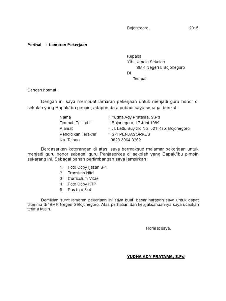 Contoh Surat Lamaran Kerja Yang Baik Dan Benar File Doc