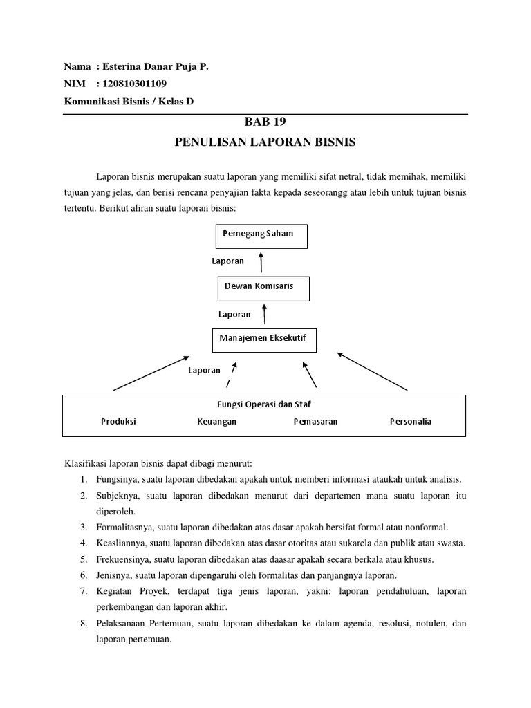 Contoh laporan bisnis dalam komunikasi bisnis. Tanpa adanya pesan bisnis maka informasi informasi yang seharusnya disampaikan tidak dapat tersampaikan. Komunikasi bisnis dapat berupa pertukaran pesan atau informasi untuk mencapai efektivitas dan efisiensi produk kerja di dalam struktur dan sistem organisasi. Laporan bisnis adalah suatu laporan yang bersifat netral memiliki tujuan yang jelas serta menyajikan fakta kepada seorang atau lebih dalam rangka mencapai tujuan bisnis tertentu. Komunikasi bisnis materi unsur proses fungsi manfaat bentuk dan contoh dosenpendidikancom secara harfiah komunikasi ialah interaksi antara dua orang atau lebih untuk menyampaikan suatu pesan atau informasi komunikasi secara umum bertujuan untuk memberikan pengetahuan kepada orang lain. Dengan laporan bisnis yang dibuat juga dapat digunakan dalam pengambilan keputusan dalam suatu perusahaan bisnis yang dijalankan. Daftar pustaka purwanto djoko.