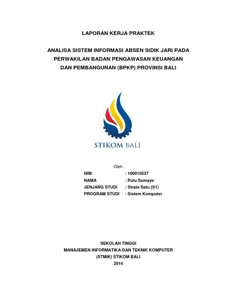 Contoh laporan kerja praktek sistem informasi. Laporan kerja praktek sistem informasi monitoring material gudang pada pt. Pdf laporan praktek kerja lapangan sistem informasi. Ilham daut 12105 55201 11 093 program studi teknik informatika fakultas teknik universitas muhammadiyah maluku utara ternate 2014 2. Pln persero areal ternate disusun oleh. Sebagai akhir dari bab penulisan kerja praktek ini maka penyusun memberi kesimpulan bahwa sistem penggajian yang telah di buat oleh penyusun akan memberikan kemudahan dalam memberikan informasi baik bagi pihak karyawan sebagai penerima gaji atau pun pihak bpkad yang akan menerima pelaporan penggajian dari dinas sehingga data laporan dapat lebih terorganisir dengan sistem sederhana tersebut. Menurut sutabri 2012 sistem informasi adalah suatu sistem di dalam suatau organisasi yang mempertemukan kebutuhan pengolahan transaksi harian yang mendukung fungsi operasi organisasi yang bersifat manajerial dengan kegiatan strategis dari sutau organisasi untuk dapat menyediakan laporan laporan yang diperlukan oleh piak luar tertentu.