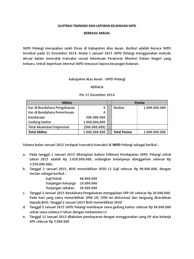 Contoh laporan keuangan skpd berbasis akrual. Berikut ini disajikan data yang terdapat di pemko batam yaitu skpd a yang mulai ada kegiatan pada tanggal 1 januari 2013. Tahunan yang dimulai dari periode januari desember c. Untuk keperluan internal skpd meyusun lapora keuangan bulanan. Contoh kasus akuntansi basis akrual di pemda. Skpd a dibentuk pada akhir tahun 2012 dan menempati sebidang tanah dan bangunan yang didalamnya telah diisi dengan peralatan dan mesin yang lengkap. 0 pelaporan keuangan berbasis akrual accrual basis.