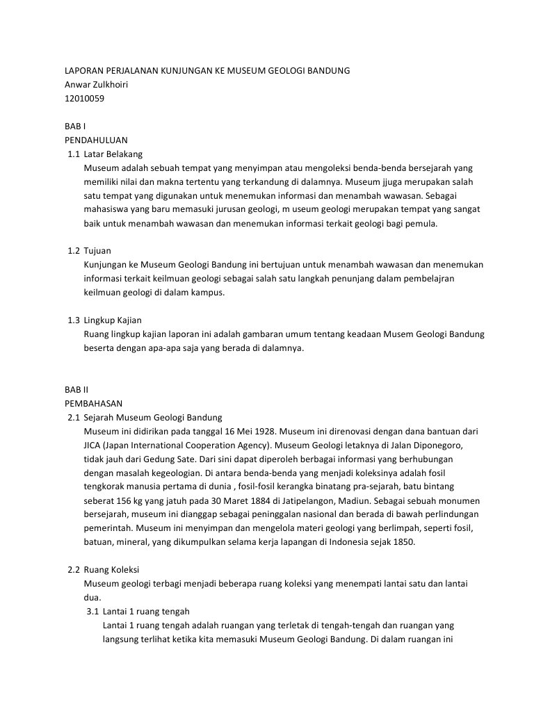 Contoh laporan kunjungan ke museum jumat 30 januari 2015. Selanjutnya koleksi yang ada di museum plestosen krikilan dan koleksi di museum dayu dipindahkan ke museum yang baru inimuseum ini selain berfungsi untuk memamerkan fosil temuan dari kawasan sangiran juga berfungsi untuk mengkonservasi. Laporan kunjungan dan wisata sejarah ini dapat menjadi acuan bagi penelitian dan penulisan laporan kunjungan dan wisata sejarah untuk selanjutnya. Sma negeri 1 bantul. Tahun ajaran 20162017. Puji dan syukur dipanjatkan kepada tuhan yang maha esa.