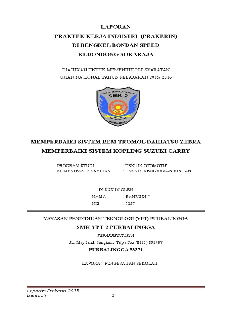 Sudah menjadi kewajiban seorang siswa membuat laporan kegiatan selama melakukan praktek kerja industri atau prakerin. Laporan pkl tkr sistem gardan saturday july 29 2017 baiklah sebelum membaca saya informasikan bahwa tidak usah di copas copy pastekarna sudah saya sediakan link downloadnya di bawah nah tinggal di edit sendiri saja thx.
