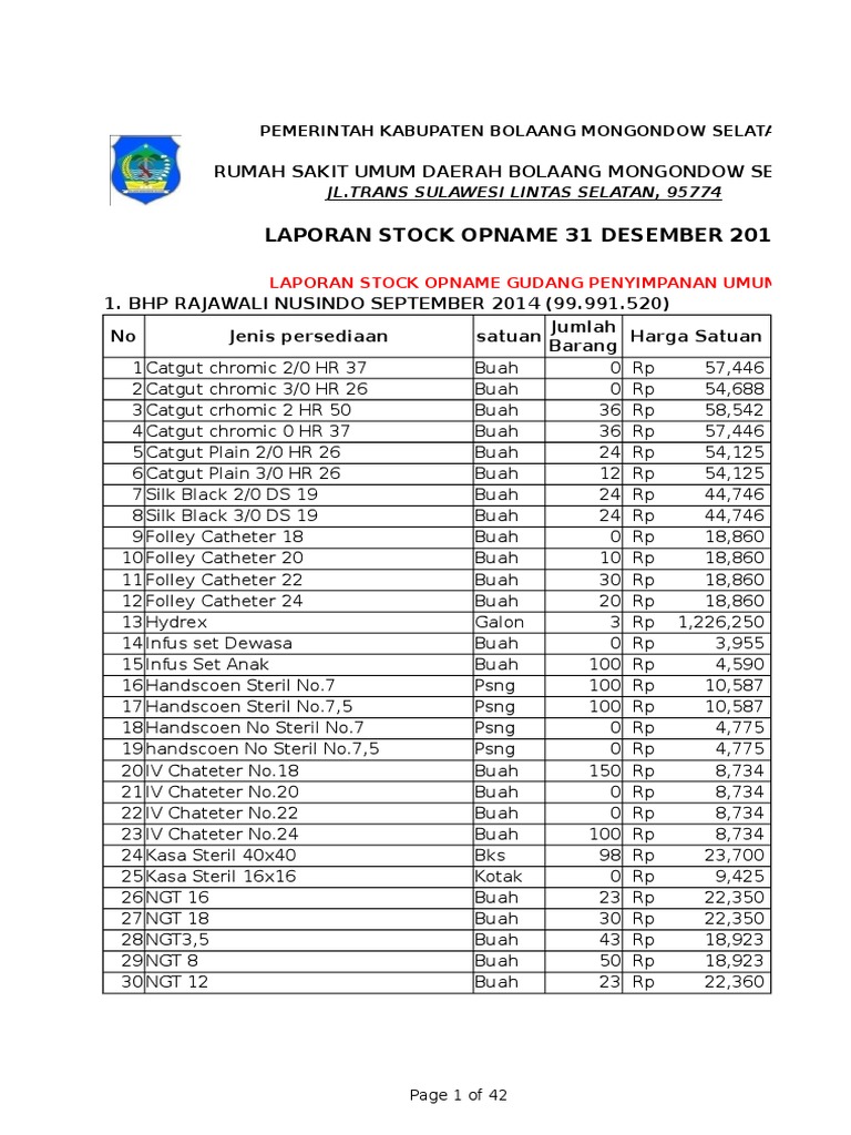 Contoh laporan stock opname. Karena begitu pentingnya arti manfaat dan kegunaan dari pemeriksaan fisik persediaan barang maka perusahaan perlu membuat prosedur baku sebagai pedoman pelaksanaan proses stock opname. Nah untuk memudahkan anda dalam melakukan stock opname akan lebih baik jika anda menggunakan sistem yang terintegrasi seperti ukirama erp. Post comments atom. Perhitungan persediaan stock opname adalah satu teknik pengendalian barang dalam bisnis usaha perdagangan untuk mengontrol kesesuaian antara jumlah barang fisik dengan catatan pembukuan atau data di sistem mesin pencatat komputer. Langkah pertama adalah dengan menghentikan pergerakan barang masuk dan keluar dari perusahaan agar nantinya saat perhitungan tidak ada selisih kelebihan atau kekurangan. Contoh sop stock opname dan cara membuatnya.