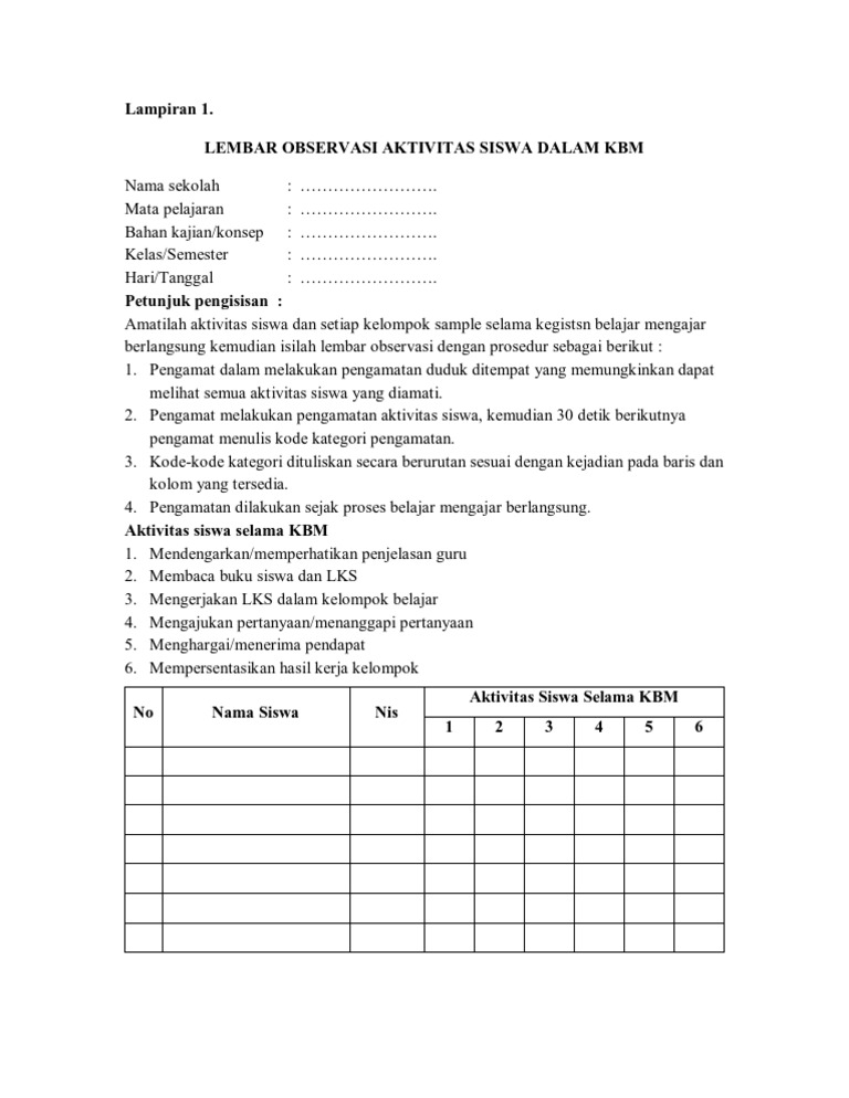 Contoh lembar observasi siswa. Contoh lembar observasi siswa kali ini saya akan membagikan contoh lembar observasi siswa pada pembelajaran cooperatif tutor sebaya. Catat hasil pengamatan anda dengan melengkapi format berikut ini atau menuliskannya di tempat lain bila. Contoh lembar observasi aktivitas belajar siswa lembar observasi aktivitas belajar siswa haritanggal. Di bawah ini selain memberikan contoh lembar observasi aktivitas belajar siswa kami juga akan menjelaskan bagaimana proses pembuatannya sehingga diharapkan apabila anda ingin memodifikasi lembar observasi penelitian ini untuk menyesuaikan dengan kebutuhan anda di lapangan anda dapat melakukannya dengan mudah. Berikut ini beberapa contoh lembar observasi yang dapat digunakan oleh seorang observer pengamat ketika mengobservasi kelas yang sedang diteliti. Langkah langkah menyusun lembar observasi penelitian.